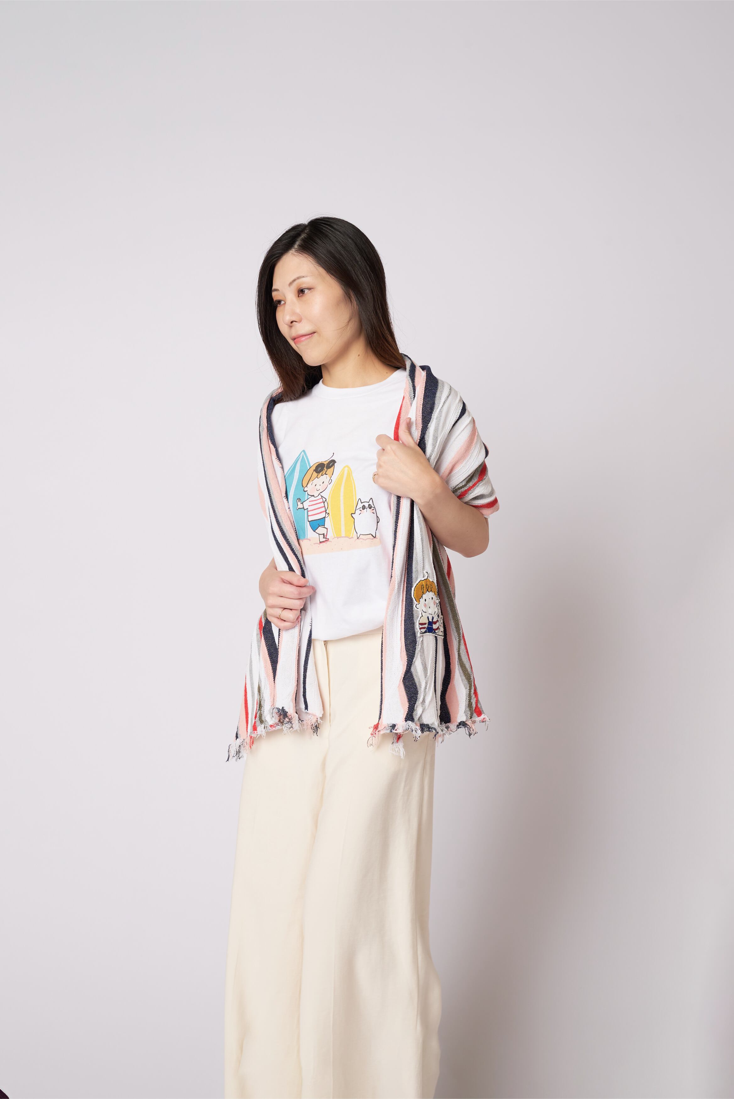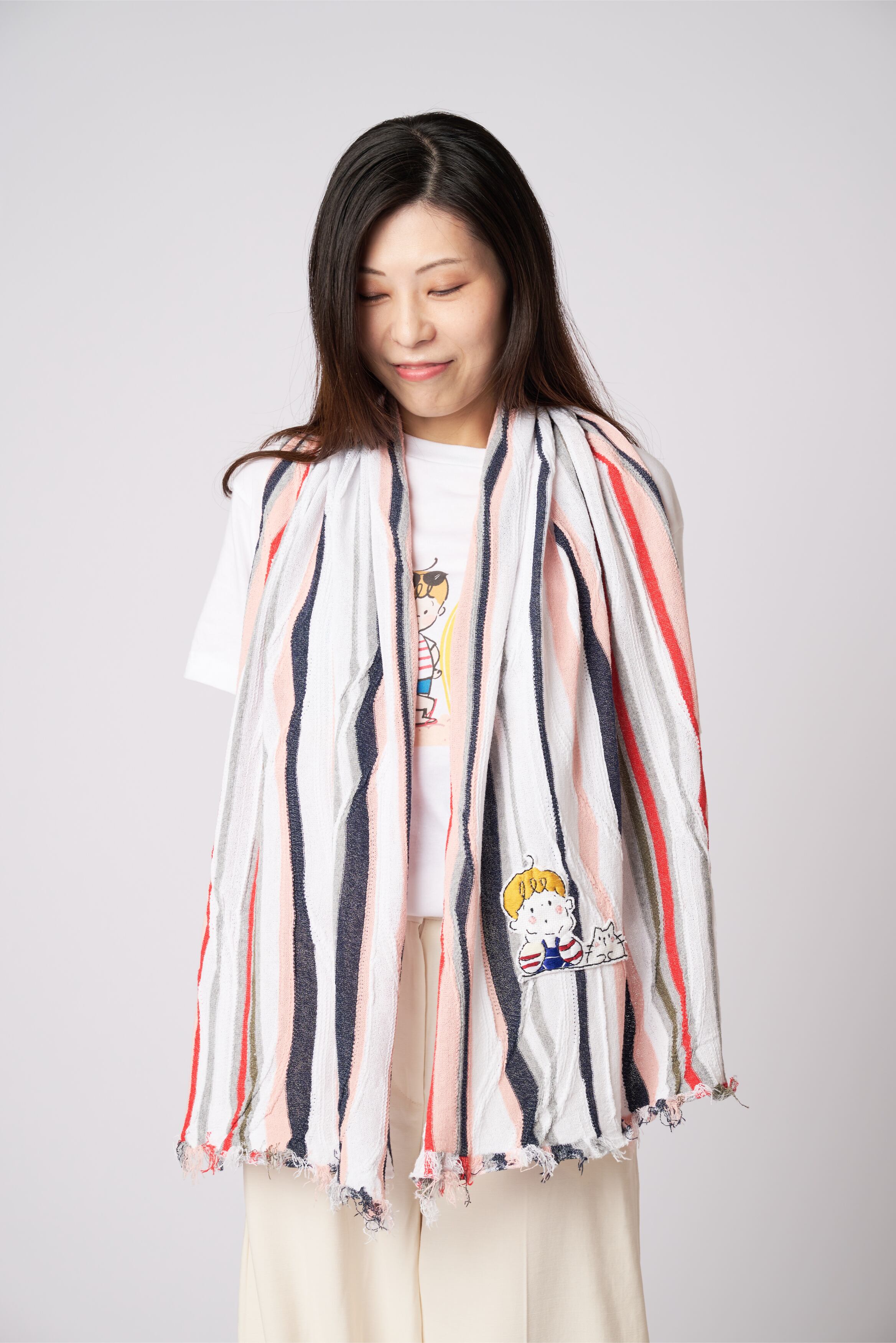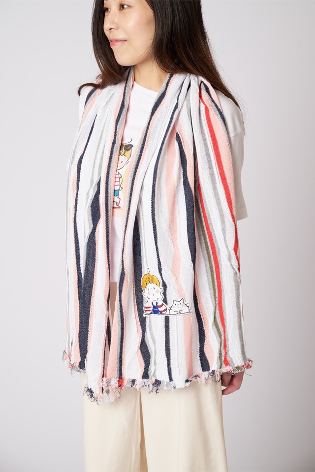 色の組み合わせが特徴的、ストライプ柄ストール。