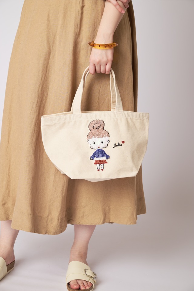 トートバッグは厚手のキャンバス素材を使用し、荷物の収納がしやすいマチ幅のミニトート。
