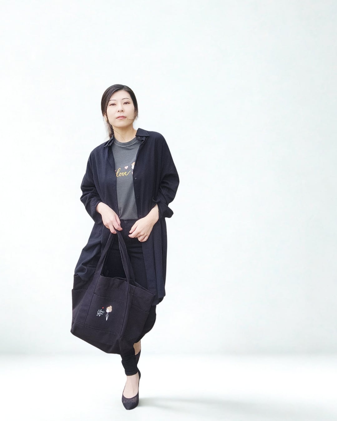 このロングシャツは、「hokoの物語」でデザイナーアイリーが、舞台衣装の依頼を受けた際に生まれた、特別な一枚。