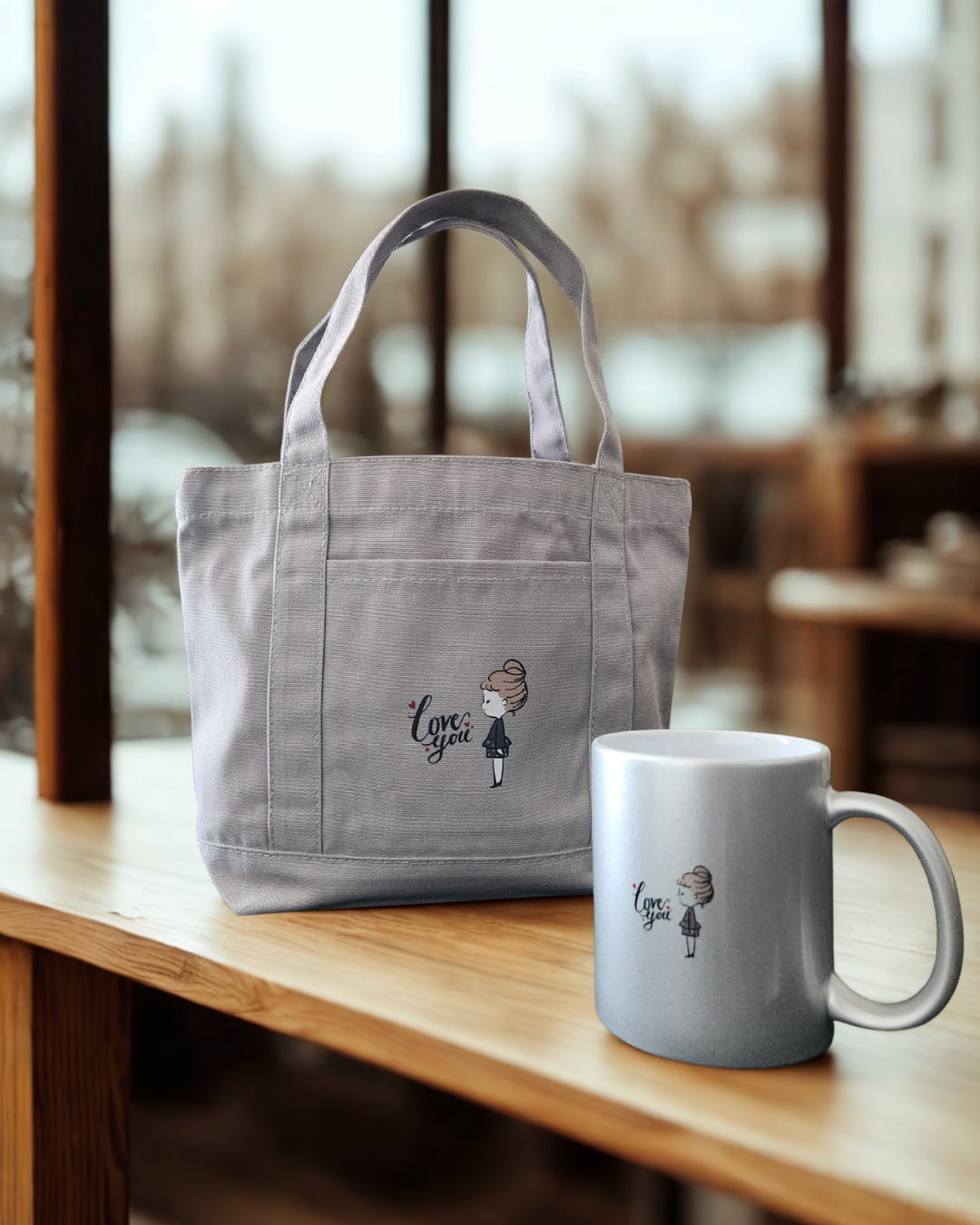 hoko人気の♡恋するアイリー♡シリーズから、上品な「スカイグレー」のトートバッグをクリスマスまでの限定アイテムでお届けいたします。銀色マグカップもクリスマスまでの限定アイテムです。