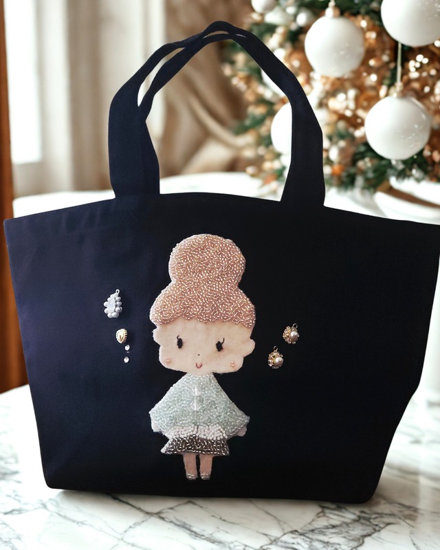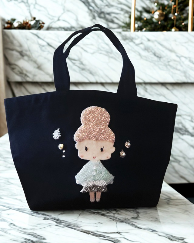 ビーズは一つ一つ手で縫い付けている、オリジナルの一点ものです。