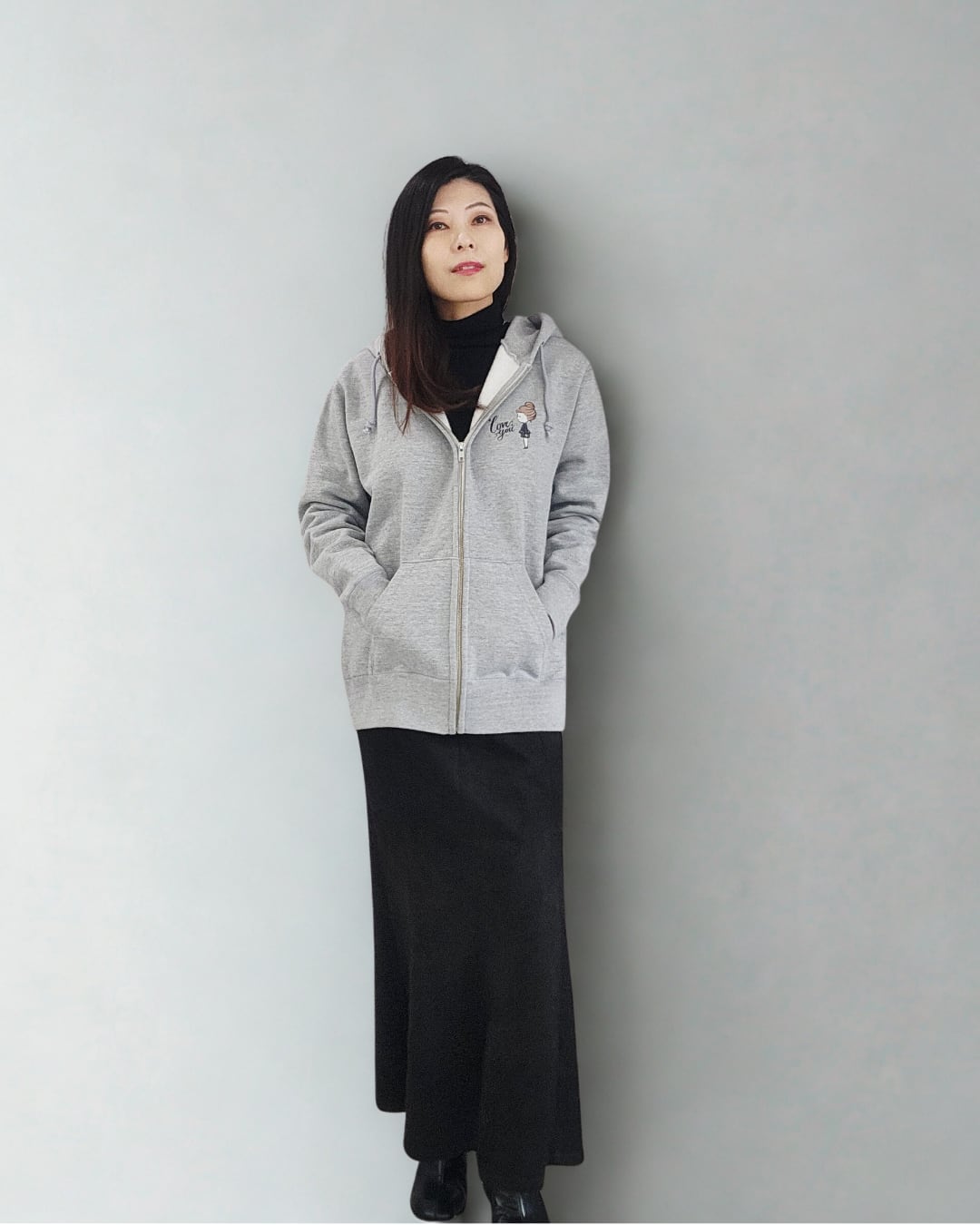 万能グレーが、着こなしに特別感を添えるジップアップパーカー。
