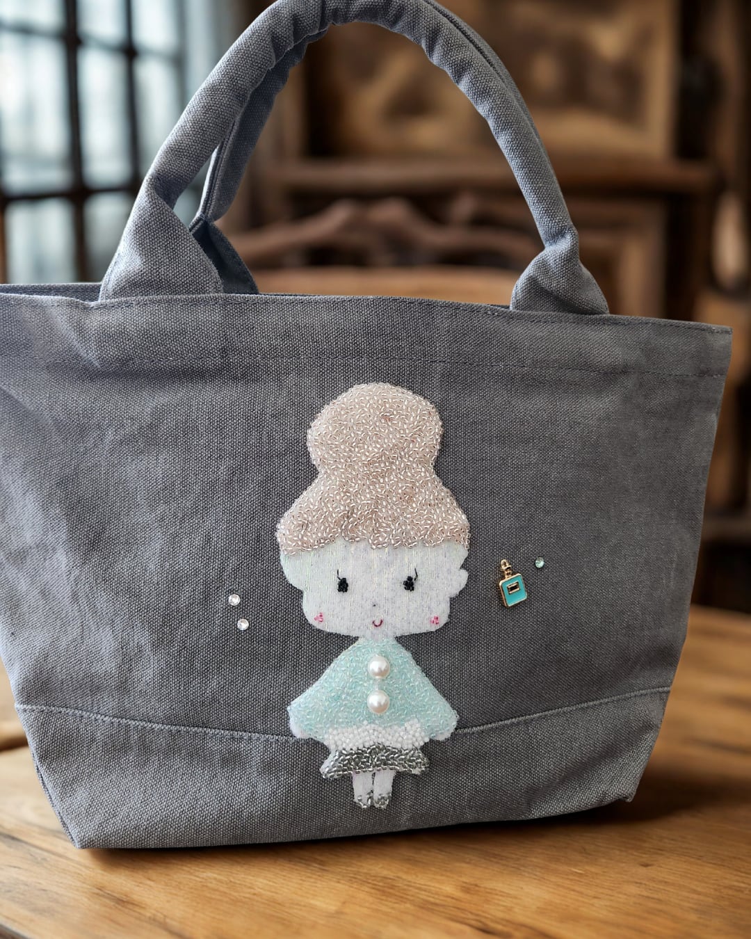♡ビーズ刺繍トートバッグ♡ グレー