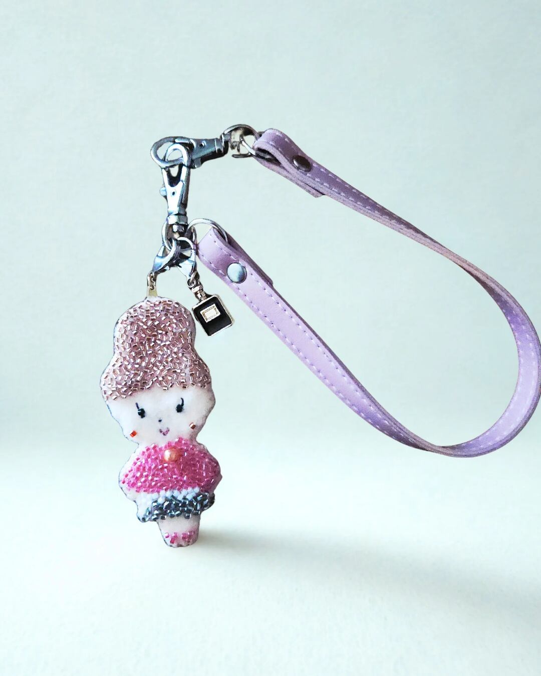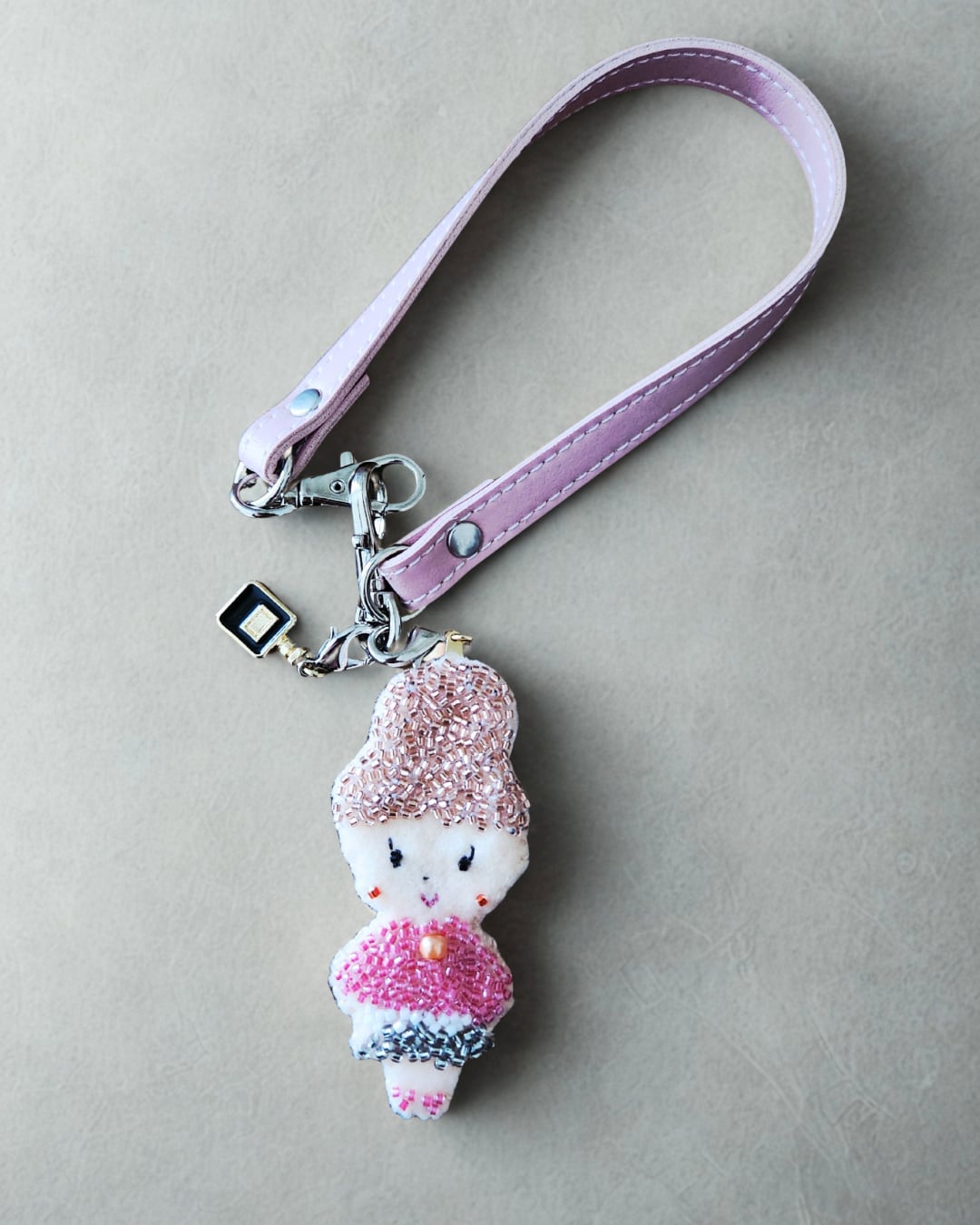 恋するアイリー❣️ビーズ刺繍ストラップ_ベビーピンク