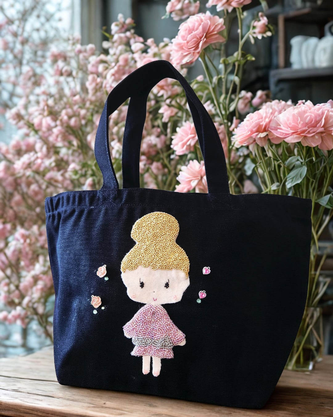 ♡ビーズ刺繍トートバッグ♡ アイリー_ピンクローズ