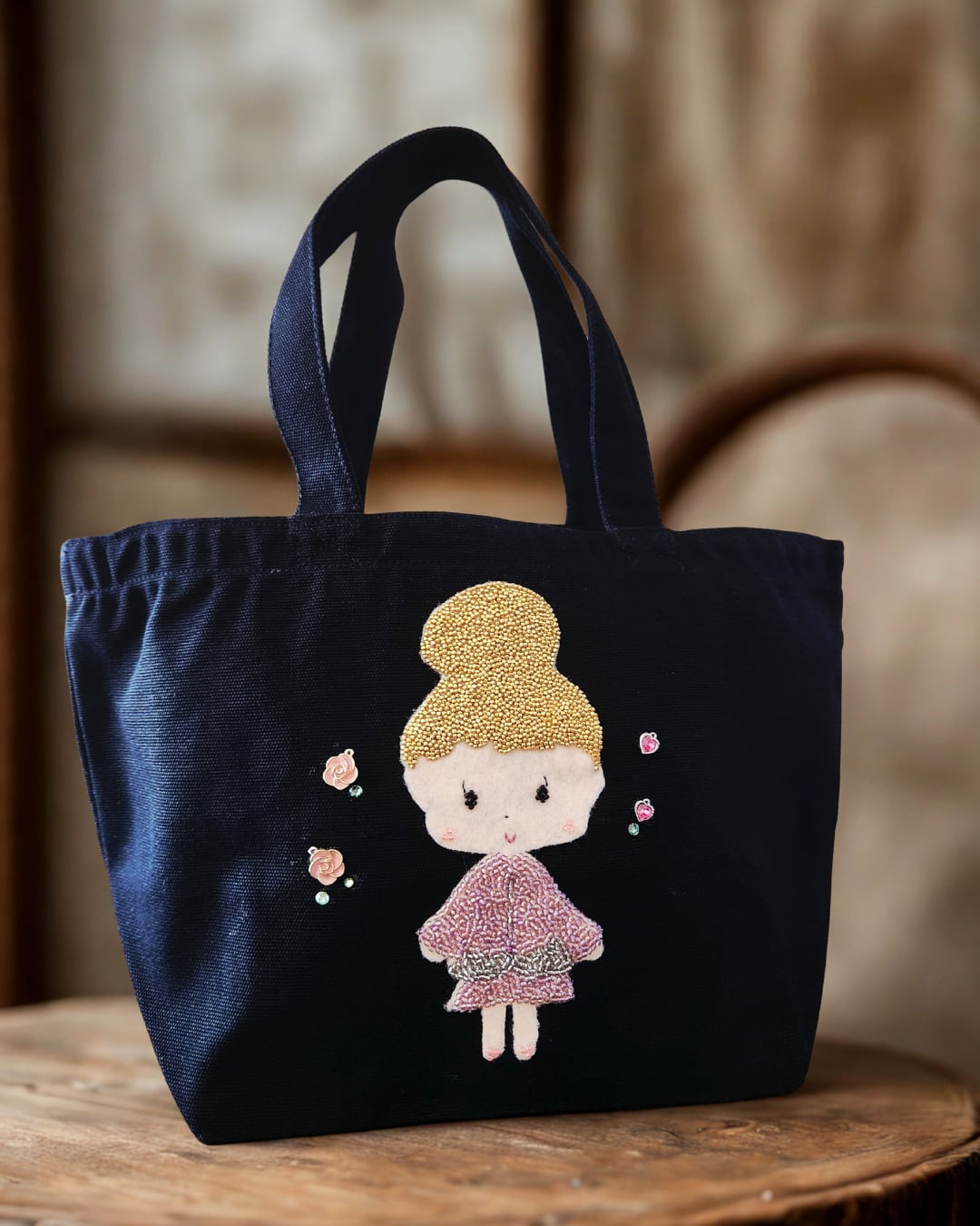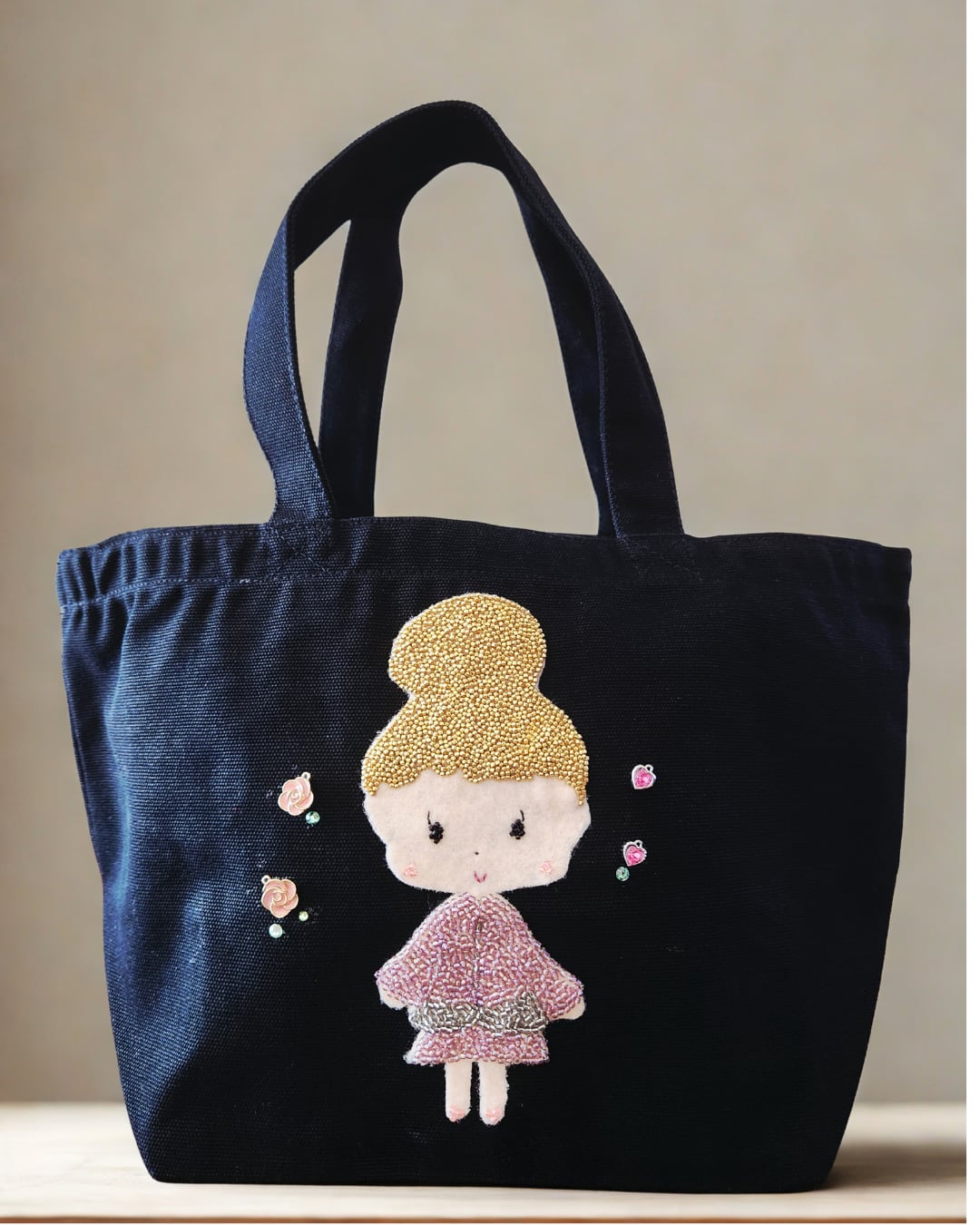 アイリーのビーズ刺繍を施したトートバッグ。