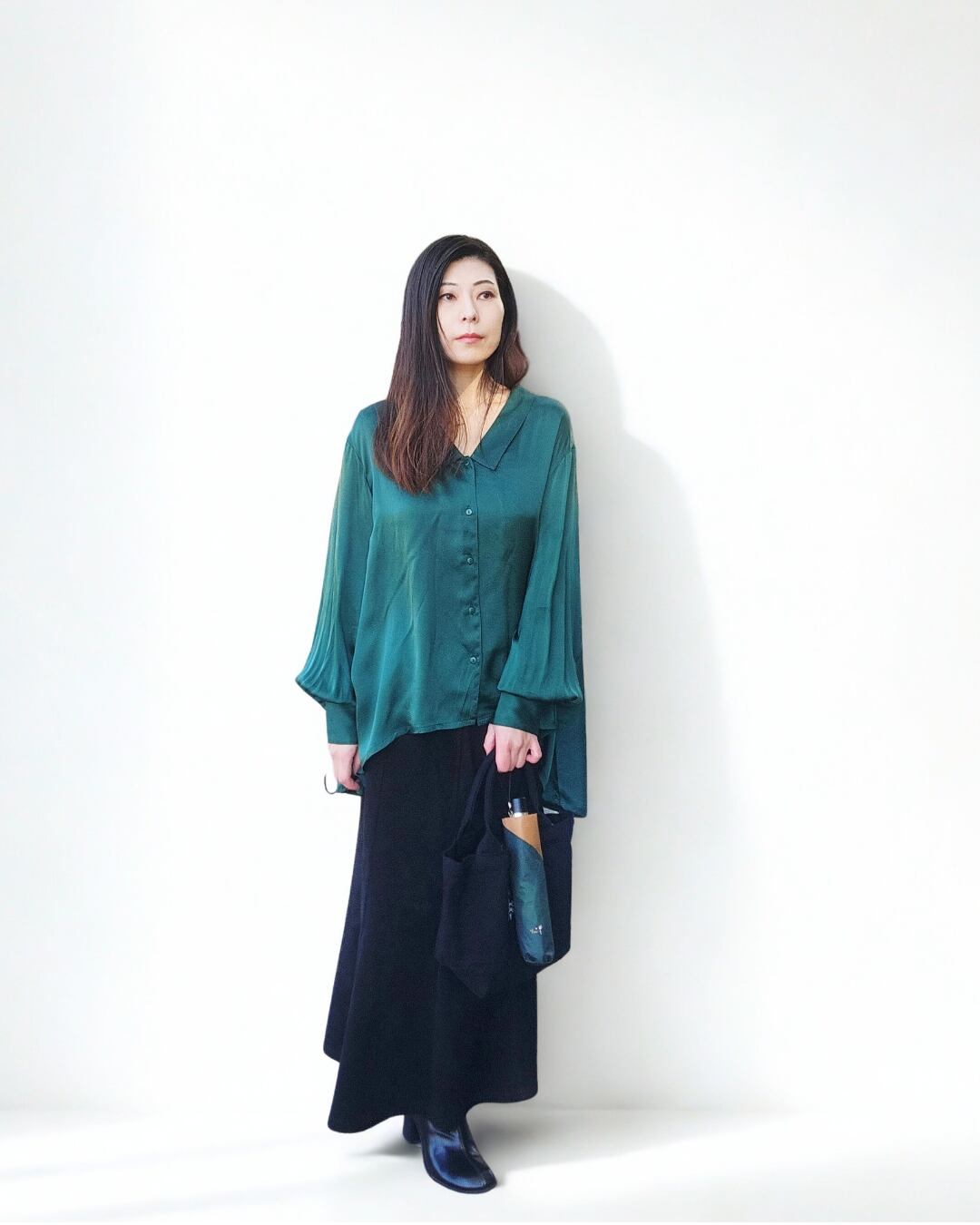 主張しすぎない、しっとりと暗めのゴールドが、装いに知的な奥行きを与えてくれます。