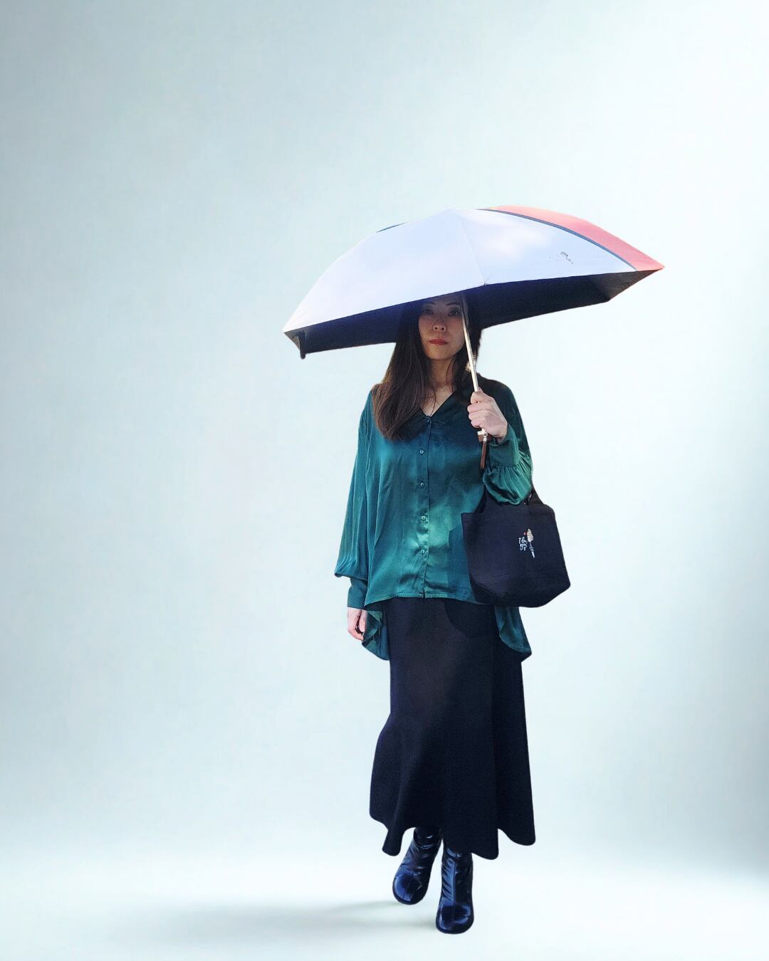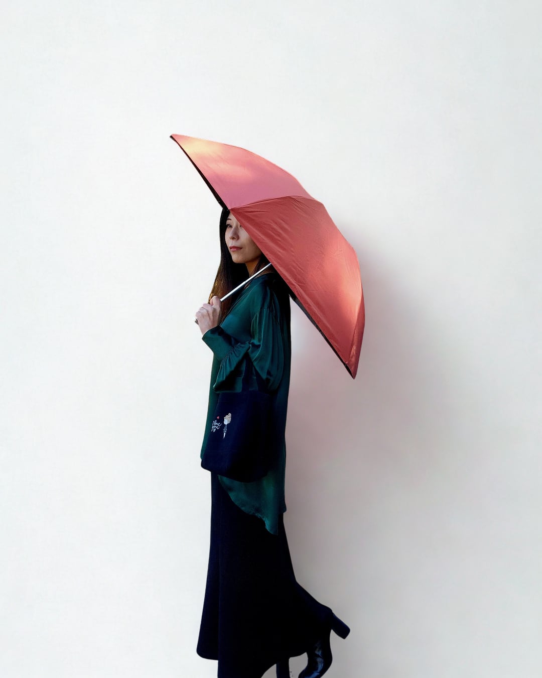 スカーフを広げるような優雅な所作をイメージして、アクセサリー感覚で持てる傘をデザインしました。