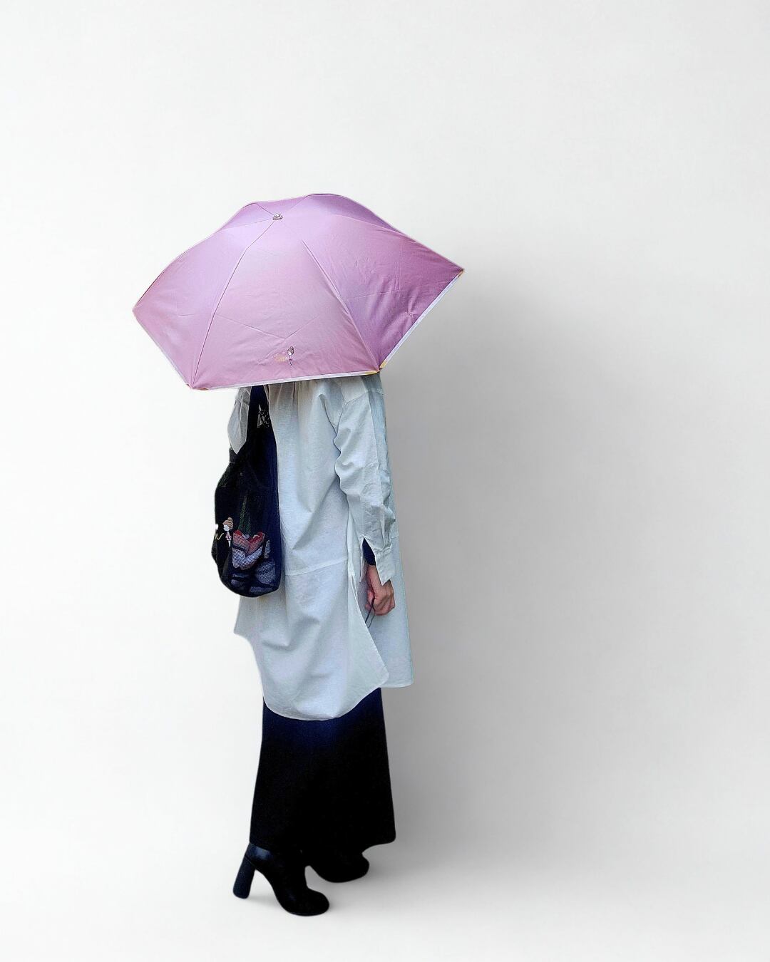 スカーフを広げるような優雅な所作をイメージして、アクセサリー感覚で持てる傘をデザインしました。
